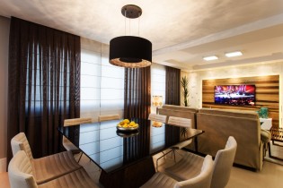 Projeto da Arquiteta Helen Resende para a Casa Cor SC 2012. Persiana Horizontal de Madeira Branca Com Fita Decorativa da UNILUX . Foto Lio Simas – Estúdio L